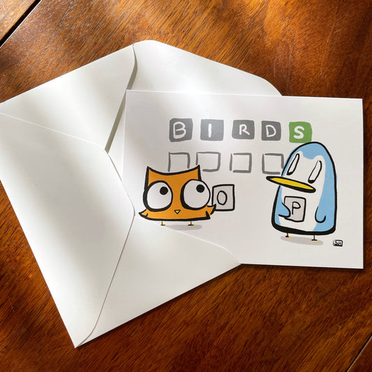 Owl & Penguin on the Moon | Owl Adventures Greeting Card
